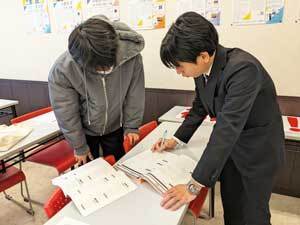 結果報告のために校舎を訪れた生徒が、高校数学の内容の質問をしているのです。